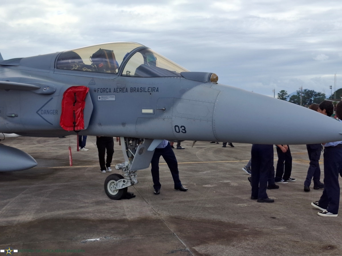 A seguir, mostramos fotos do F-39E FAB 4103, em exposição estática durante as comemorações do Dia da Aviação de Caça, realizada na Base Aérea de Santa Cruz, no dia 22 de abril de 2025.